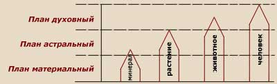 Если мы изобразим миры, или планы природы, с помощью горизонтальных линий, то нижеследующая схема покажет прогрессивную эволюцию природы.