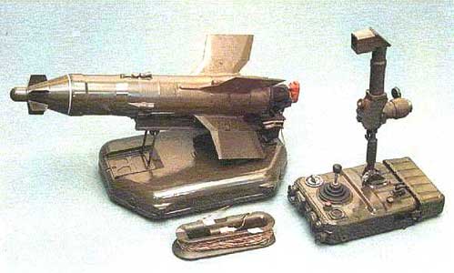 Борт ракеты предельно упрощен и основные функции управления перенесены на наземную аппаратуру, в том числе блок формирования команды управления, источники питания и приемно-усилительные приборы. Передача сформированной команды и энергопитание осуществляется по специальному водостойкому трехжильному микрокабелю длиной 3200 метров, упрочненному тридцатью шестью шелковыми нитями. Катушка с кабелем размещена на ракете и разматывается в процессе полета. Система управления - одноканальная . Планер и корпус боевой части ракеты выполнен из специальной пластмассы, а двигательная установка, гироскоп, газовые рулевые машинки и воронка боевой части - из металла. Это позволило весьма значительно снизить издержки и себестоимость производства ракеты. Наведение на цель полуавтоматическое или ручное (по трем точкам). При климатических испытаниях комплекс в течение трех месяцев выдерживал без деформаций температуру +50° и мог храниться не менее 10 лет.