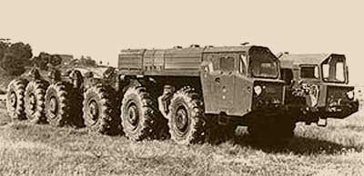 В передней части машины монтировался силовой агрегат большой мощности. По обеим сторонам от него устанавливались две неметаллические кабины. Машина имела двенадцать односкатных колес, оснащенных широкопрофильными шинами. Десять из двенадцати колес были ведущими. Управляемыми были сделаны колеса первых трех осей.
