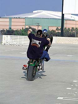 По мере того, как Майк все больше привыкал к двигателю и наматывал все большее количество миль, с каждой поездкой увеличивалась и скорость мотоцикла. Но задолго до этого он понял, что достаточно было лишь слегка газануть, и переднее колесо взлетало до небес. Удовольствие было нескончаемым и непередаваемым!